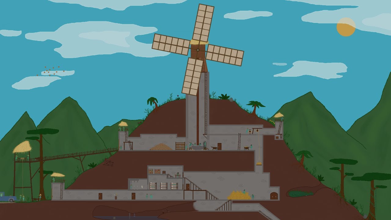 In the Halls Beneath the Windmill, a short little side view/cutaway animation I made of a busy windmill